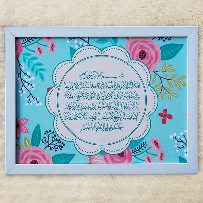 Artistic 18 Ayat Kursi Kaligrafi Poster Kayu Solid Hiasan Dinding