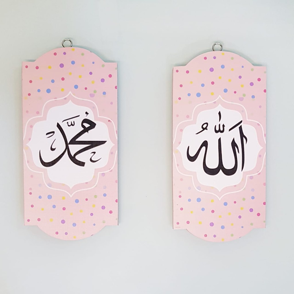 Kaligrafi Shabby Chic Allah Dan Muhammad Hiasan Dinding