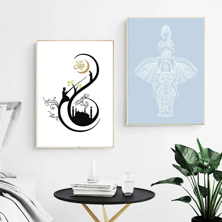 Us 2 95 Allahu Akbar Kaligrafi Arab Seni Hitam Dan Putih Poster Modern Islam Rumah Dinding Gambar Kanvas Lukisan Dekorasi In Painting Calligraphy