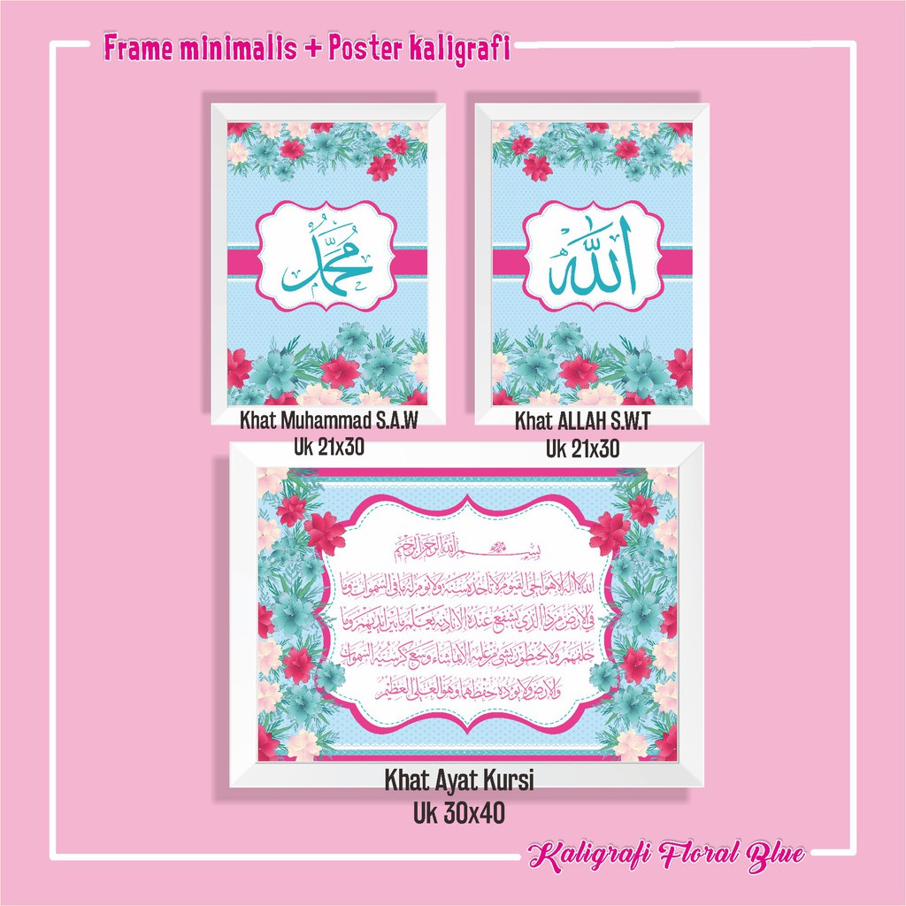 Kaligrafi Set Tipe Floral Biru Include Bingkai Frame