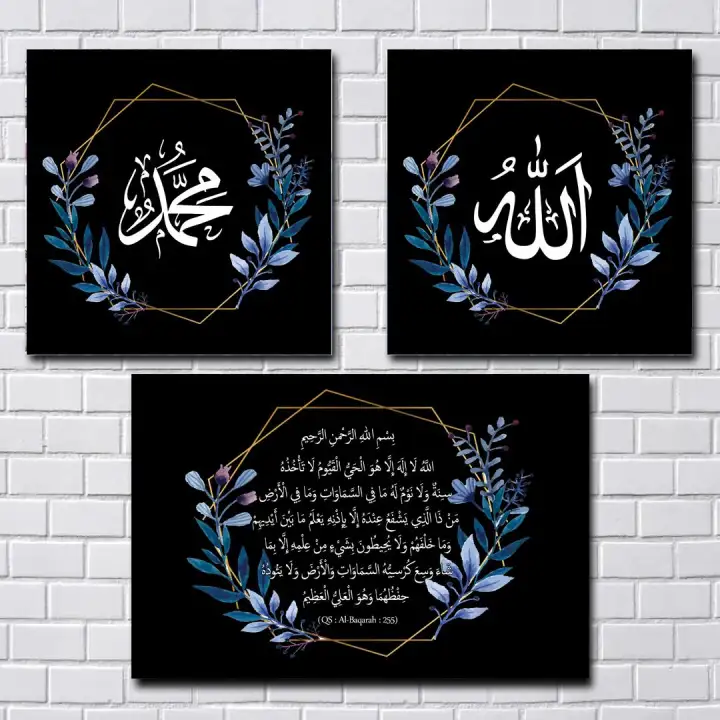 Poster Kaligrafi Islami Modern Ayat Kursi 4 Hiasan Dinding Pigura A4