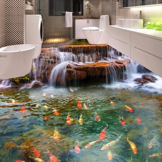Termurah Kustom 3d Lantai Wallpaper Air Terjun Carp Lantai Kamar Mandi Mural Lukisan 3d Pvc Perekat