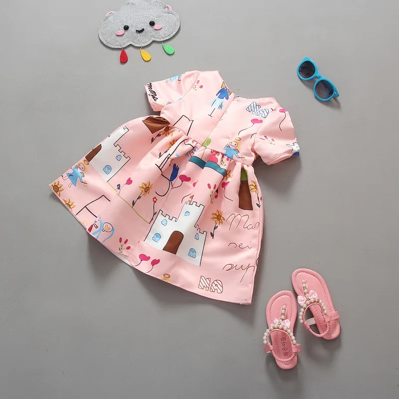 2016 Gadis Putri Gaun Fashion Designer Musim Panas Kartun