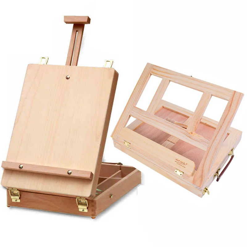 Meja Kuda Kuda Terintegrasi Dengan Kotak Kayu Seni Menggambar Lukisan Meja Kotak Multifungsi Cat Minyak Koper Desktop Kotak Peralatan Seni