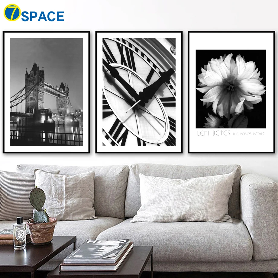 Us 3 38 41 Off Jembatan Jam Bunga Dinding Seni Lukisan Kanvas Nordic Poster Dan Cetakan Hitam Putih Dinding Gambar Untuk Ruang Tamu Pop Art