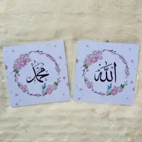 Kaligrafi Set Allah Muhammad Ayat Kursi Shabby Chic Hiasan Dinding