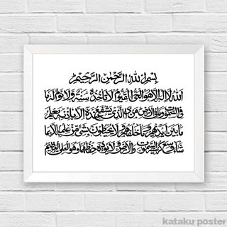 Hiasan Dinding Poster Kaligrafi Ayat Kursi Hitam Putih