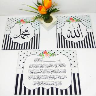 Promo Murah Kaligrafi Set Ayat Kursi Dan Allah Muhammad Hitam Putih Minimalis Lo126