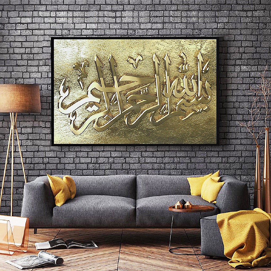 Arabic Kaligrafi Bismillah Islamic Kanvas Cetak Emas Lukisan Seni Dinding Dekorasi Rumah