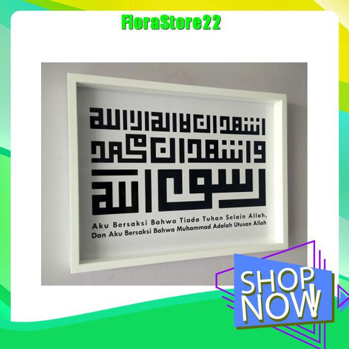 Promo Hiasan Dinding Lukisan Kaligrafi Syahadat Kufi Hitam Putih Frame Kayu