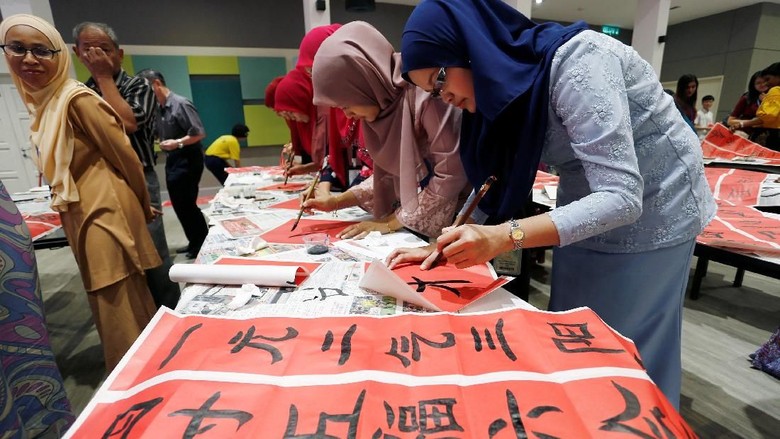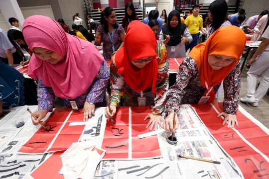 Sambut Imlek Ratusan Guru Di Malaysia Bikin Kaligrafi Cina