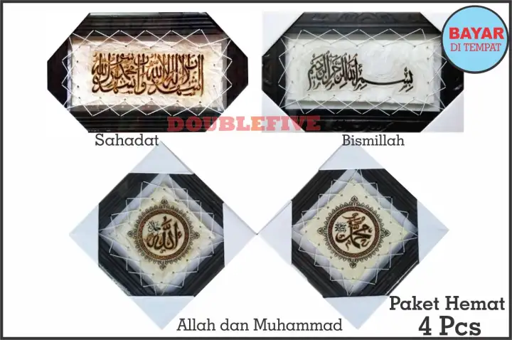 Paket Hemat Hiasan Dinding Central Kaligrafi Kulit 4 Pcs Syahadat Bismillah Allah Muhammad