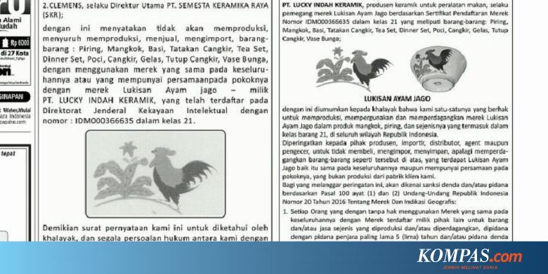 Denda Rp2 Miliar Pakai Logo Ayam Jago Tanpa Izin Viva