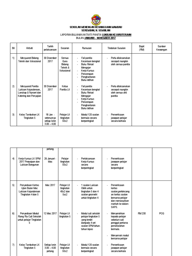 Laporan Aktiviti Panitia Lk Dan Gkt Januari November 2020