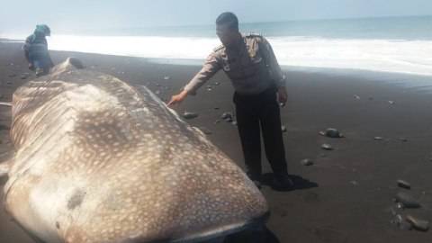 Ikan Hiu Paus Tutul Mati Terdampar Di Pantai Kajaran Lumajang