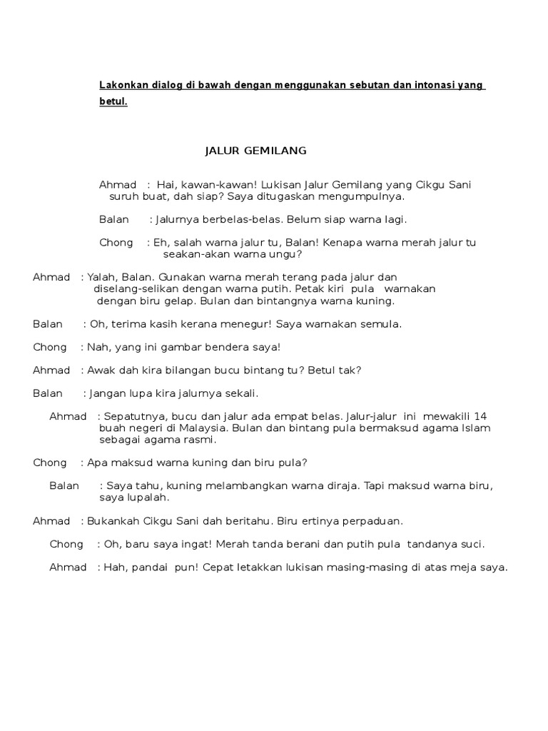 Lakonkan Dialog Di Bawah Dengan Menggunakan Sebutan Dan