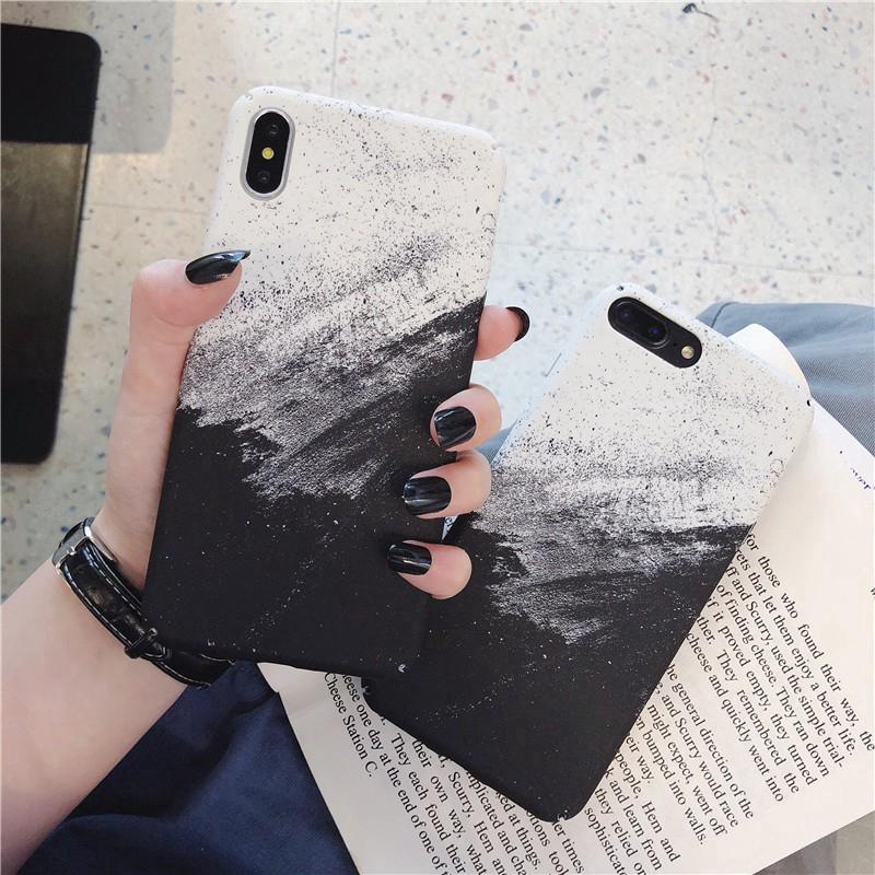 Casing Hard Case Simple Motif Lukisan Warna Hitam Putih Untuk Iphone 6 6s 7 8 Plus X