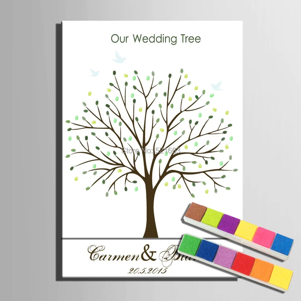Tanda Tangan Tandatangan Pokok Lukisan Lukisan Pohon Hijau Hadiah Perkahwinan Hadiah Hiasan Diy Parti Hadiah Termasuk 6ink Warna
