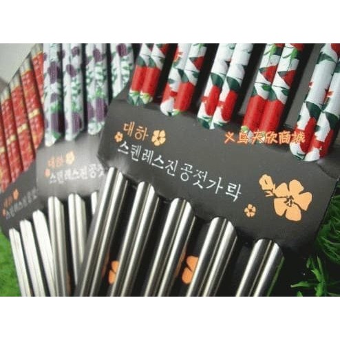 Sumpit Vakum Stainless Steel Dengan Motif Lukisan Cina 1 Set Isi 5