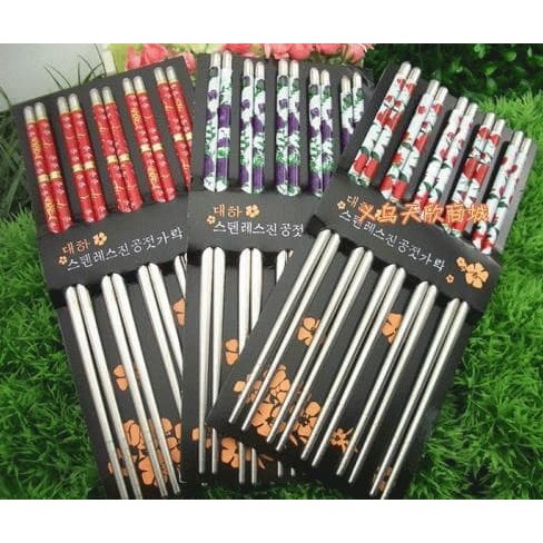 Sumpit Vakum Stainless Steel Dengan Motif Lukisan Cina 1 Set Isi 5 Terbatas