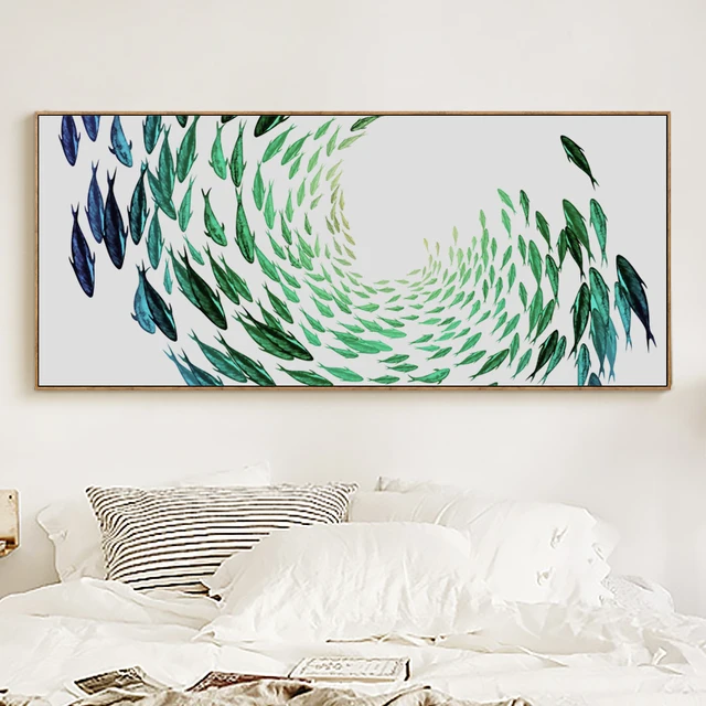 Us 2 91 48 Off 07g Spanduk Berputar Putar Ikan Gangs Kanvas Seni Lukisan Abstrak Cetak Poster Gambar Dinding Kamar Tidur Dekorasi Rumah Dinding