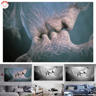 Lukisan Kanvas Dinding Desain Love Kiss Abstrak Warna Hitam Untuk Dekorasi Kamar Tidur