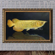 Murni Dilukis Dengan Tangan Realistis Emas Arowana Minyak Lukisan Untuk Dekorasi Dinding Seni Berkualitas Tinggi Ikan Hewan Laut Minyak Lukisan