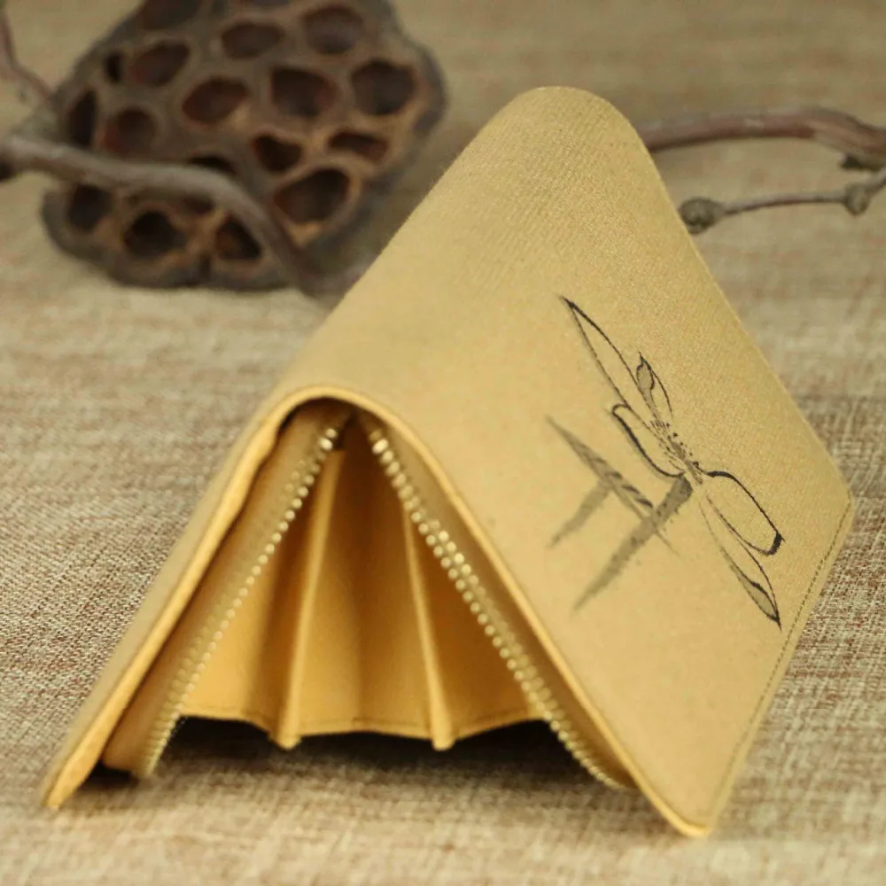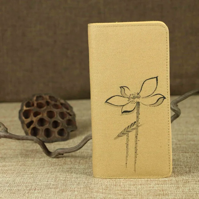 Us 11 16 40 Off Tinta Cina Lukisan Tangan Lotus Flower Sketsa Wanita Linen Kanvas Dompet Zip Vintage Wanita Kasual Vertikal Purse Notecase Khaki Di
