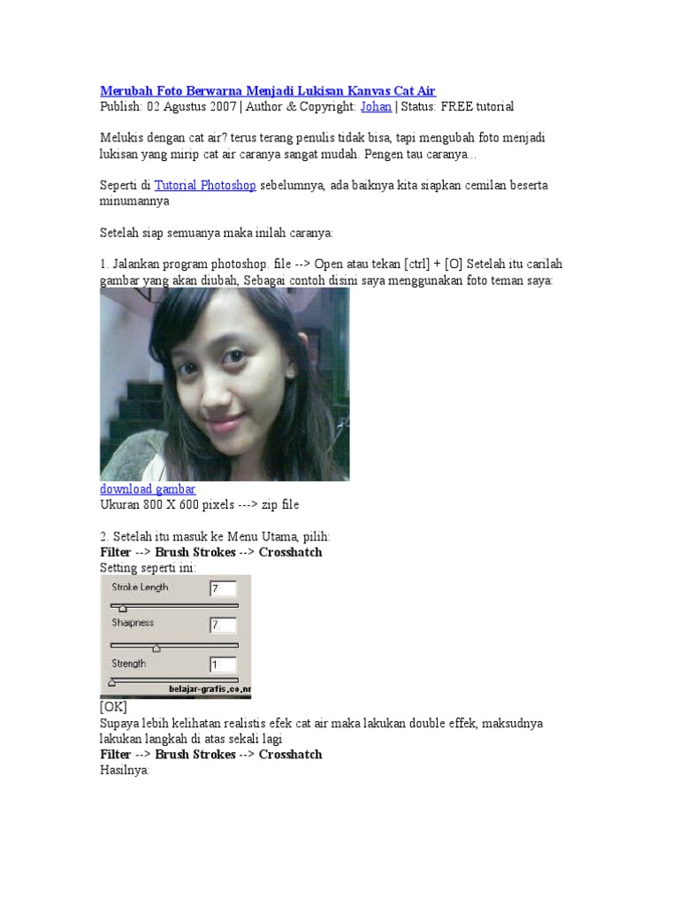 Merubah Foto Berwarna Menjadi Lukisan Kanvas Cat Air Photoshop