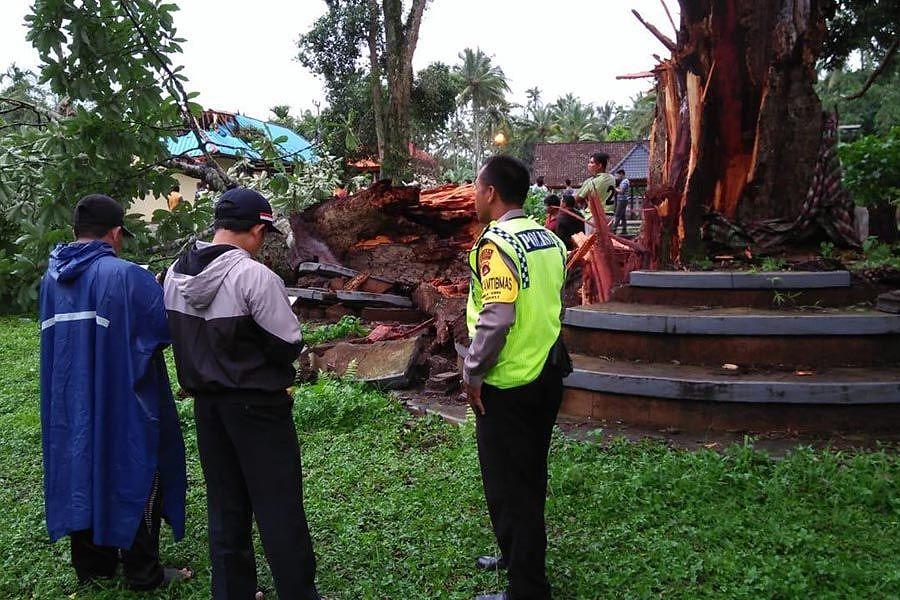 Dapatkan Pohon Kepuh Tumbang Warga Terluka Dan Bangunan Pelinggih Rusak