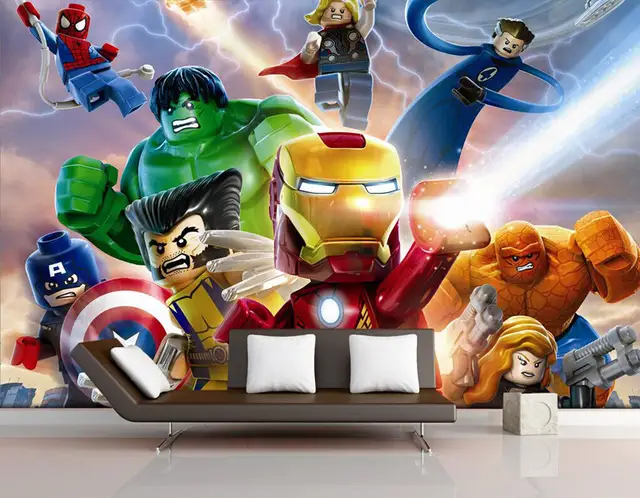 Us 16 19 40 Off 3d Lego Avengers Wallpaper For Walls Mural Cartoon Wallpaper Kids Bedroom Room Decor Tv Backdrop Wall Covering Photo Wallpaper In