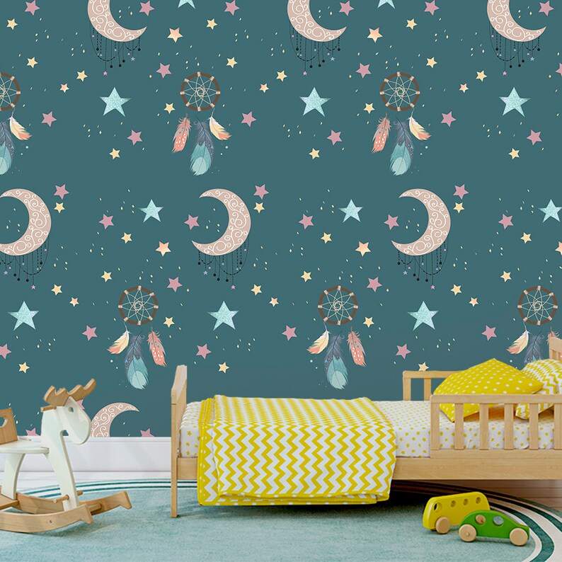 Moon And Stars Wallpaper Dream Catcher Wallpaper For Nursery Dark Pattern Wallpaper For Kids Removable Peel Stick Modern Mural Z160