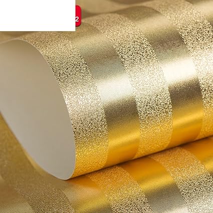 Stripe Design Wallpaper In Golden Color For Hotel Spa Study Room Hotel Using