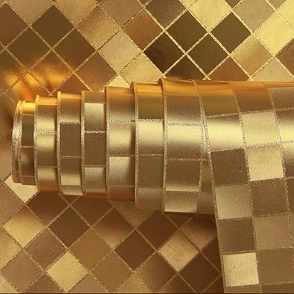 Qihang Luxury Gold Foil Mosaic Background Flicker Wall Paper Modern Roll Hotel Ceiling Decorative Wallpaper Roll Gold Yellow Colour