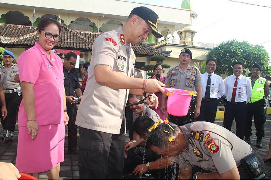 Naik Pangkat 78 Anggota Polres Jembrana Disiram Air Kembang