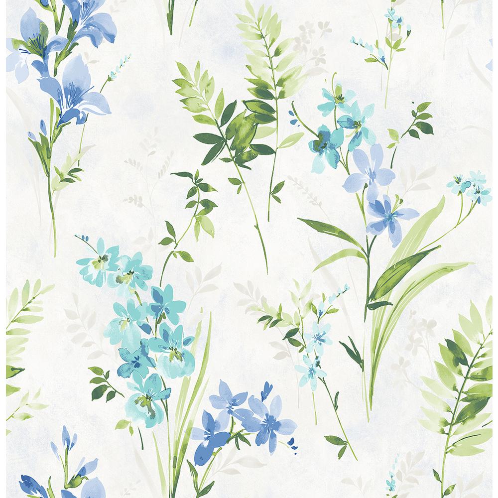56 4 Sq Ft Cyrus Blue Floral Wallpaper