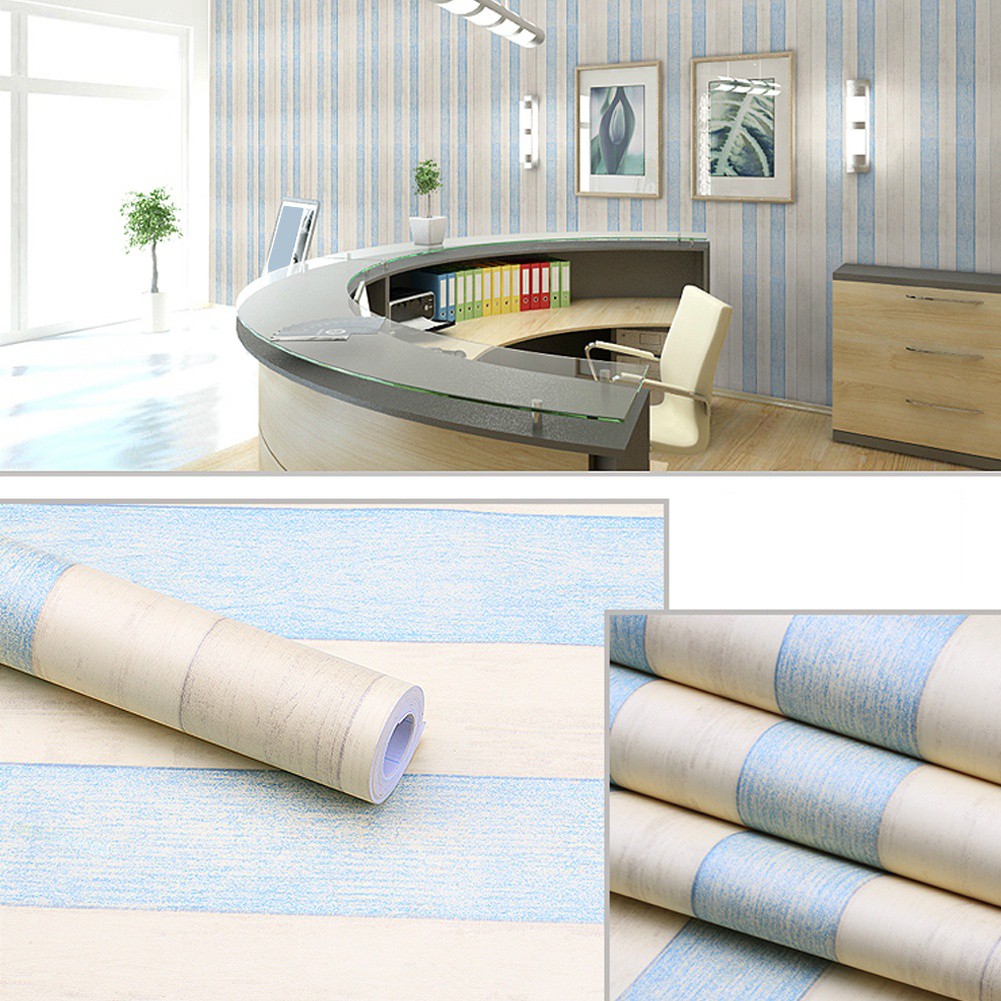 Home Waterproof Pvc Wallpaper Stripe Wood Grain Texture Pattern Wall Sticker 10m