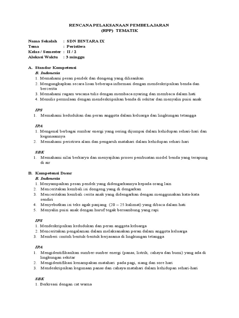 Download Gratis 6 Rpp Tematik Semester 2 Docx
