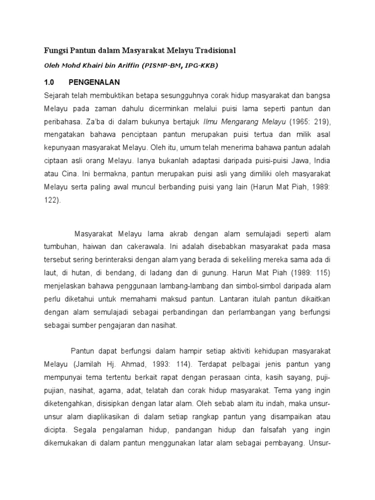 Gratis Download Fungsi Pantun Dalam Masyarakat Melayu Tradisional Doc