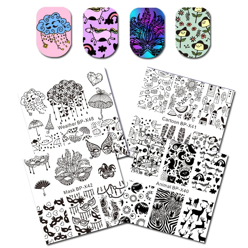 Lahir Cukup Square Kartun Hewan Kuku Stamping Piring Awan Hujan